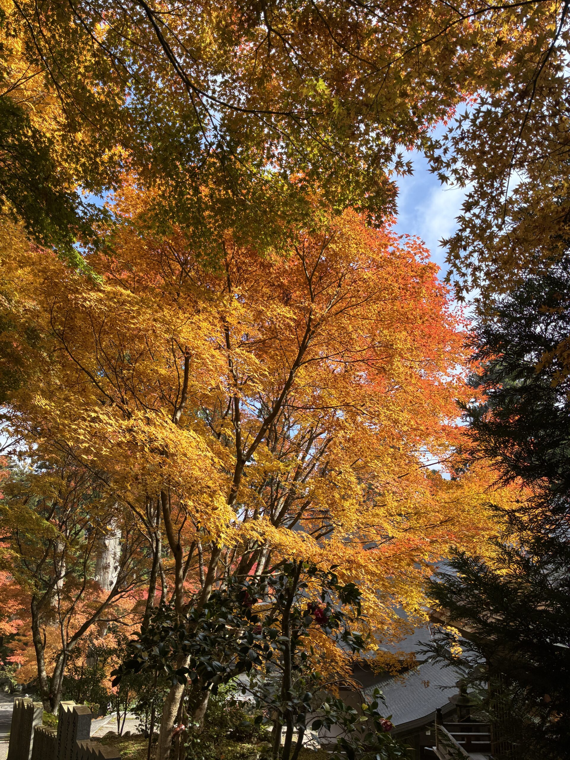 ロープウェイで一気に山上へ上がると、紅葉に包まれた静かな境内が出迎え。石段と苔、杉木立の奥から鐘の音が凪のように広がります。写真多めで振り返り。
